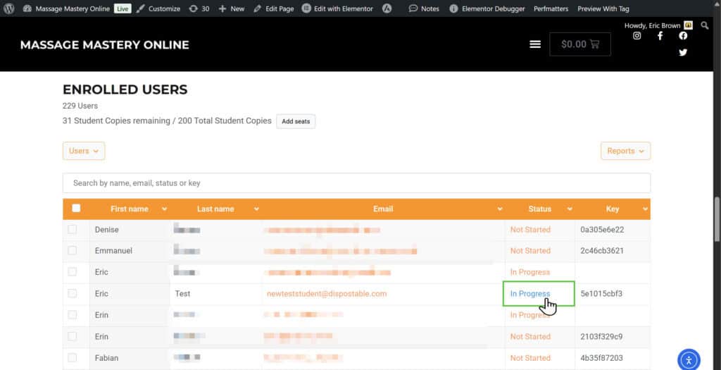 4. Click the In Progress link next to their name to open their Individual Progress Report.
